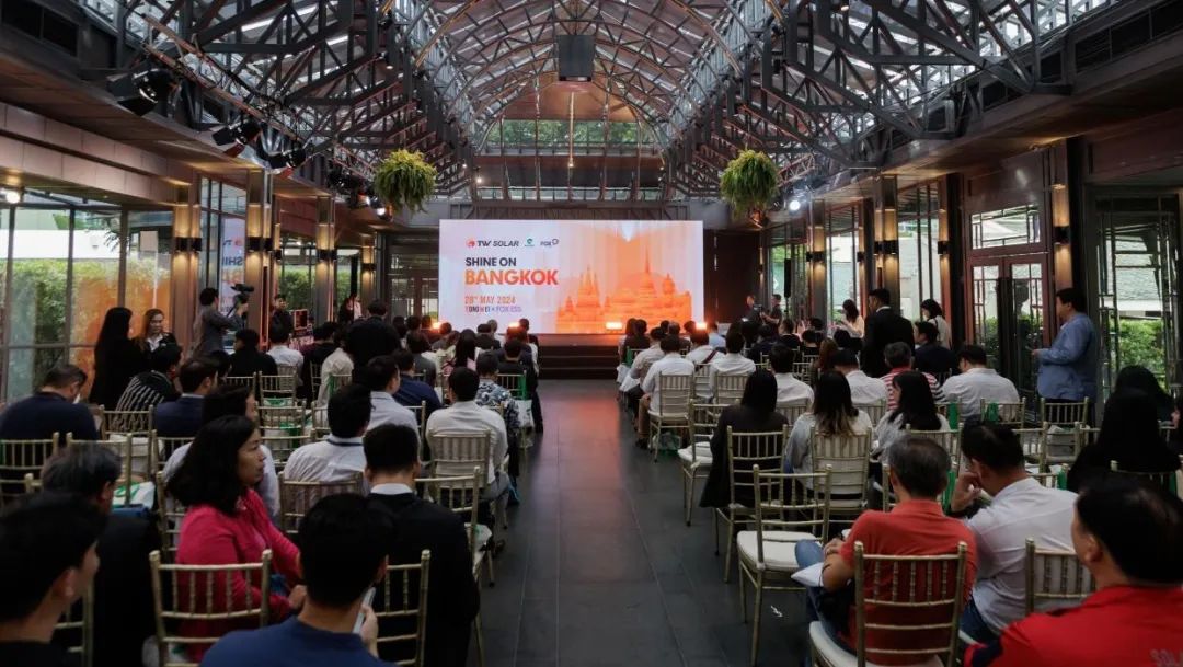5月28日,通威攜手Sunday Solar Supply舉辦了主題為“SHINE ON BANGKOK”的產品推介會。此次活動成功吸引了泰國逾200位客戶、合作伙伴及當地媒體的關注與參與,以通威基因為泰國編寫綠色能源希望。