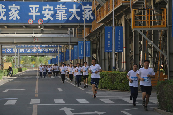 11點20分,隨著鳴笛一響,大家在李斌總的帶領下,疾馳而出。一個個矯健的身影如同跳動的音符,共同踏響“奔跑交響曲”。400余名參跑員工按既定的線路,奔跑在廠區的綠道間,伴隨著設備運轉的聲音和炙熱的陽光,永祥新能源花園式廠區的風景一步步映入眼簾,參跑選手仿佛與永祥齊跑,與光伏同行。
