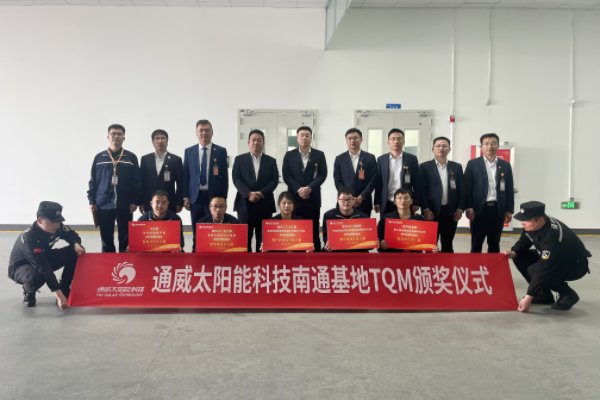 近日,通威太陽能科技成功舉行2024年第一季度TQM頒獎儀式。通威股份總裁助理、通威太陽能科技有限公司總經(jīng)理蕭圣義,通威太陽能(鹽城)有限公司副總經(jīng)理翟緒錦,通威太陽能(合肥)有限公司總經(jīng)理助理李冬生,通威太陽能(四川)有限公司總經(jīng)理助理朱劍誠,通威太陽能科技南通基地相關(guān)負責(zé)人出席活動并為獲獎代表頒獎。