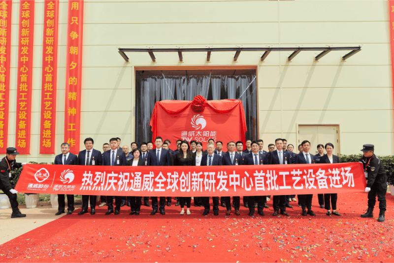 2023年11月30日,通威全球創新研發中心項目啟動建設。歷時近半年的建設,4月26日,項目建設迎來重要時刻——首批工藝設備進場,通威股份董事長、CEO劉舒琪,通威股份光伏首席技術官邢國強及光伏技術部核心骨干代表,通威太陽能管理團隊代表共同現場見證。