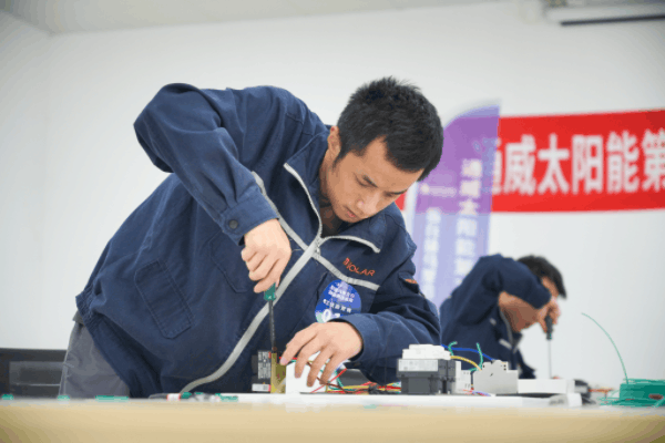 為進一步點燃全體員工學習知識、比拼技能、鉆研業務的激情,將技能人才的力量轉化為推動公司發展的強大動力,4月22日,通威太陽能第五屆職工技能大賽正式拉開序幕。本屆大賽涵蓋了電池片檢驗、刮漿料桶、叉車技能、消防技能、電工技能和硅片檢驗等多個競賽項目,吸引了430余名來自不同崗位的技能高手踴躍參與。他們在賽場上各顯身手,充分展現了自己的專業素養和技能實力。