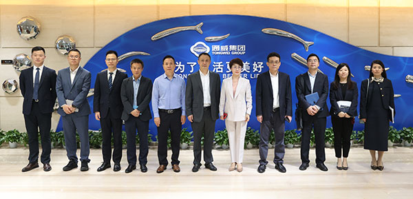 來賓一行參觀了集團體驗中心,詳細了解了通威發展歷程、主營業務發展現狀和創新成果,對通威在綠色農業和綠色能源領域持續取得的成績表示高度贊賞。座談期間,雙方圍繞全球能源消費結構、以光伏為代表的可再生能源發展前景、全球光伏產業發展現狀、通威快速穩健發展的戰略定力等方面進行交流探討。