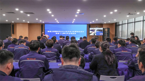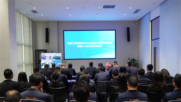 本次活動以全體參會人員起立,齊唱《通威之歌》拉開序幕。隨后播放主題VCR,回顧通威發展,乘時代東風能源轉型,面臨行業寒冬戒驕戒躁,穩扎穩打,苦練內功,夯實基本功,增強競爭力,共度寒冬,展望未來。隨后,光伏學習中心對2024年通威太陽能科技企業文化建設方案進行宣貫,通威太陽能科技將深度聚焦集團企業文化“戒驕戒躁,穿越寒冬”主題,積極響應六大主線活動,成立企業文化建設專項工作組,從方法論出發,運用機制保障,通過文化宣傳賦能、特色文化欄目打造文化傳播矩陣;通過學習植入、核心價值觀牽引,從“頂層設計”到“具體實踐”,從“宏大儀式”到“微觀感受”將文化工作全面落地。