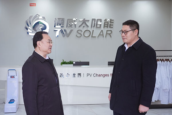 2月8日,眉山市委副書記、天府新區眉山黨工委書記趙文嶠蒞臨通威太陽能彭山基地慰問調研,天府新區眉山黨工委常務副書記廖仁軍,天府新區眉山黨工委副書記、管委會常務副主任余敏,眉山天府新區管委會副主任徐曉飛陪同慰問調研,通威太陽能彭山基地總經理助理顧峰熱情接待。
