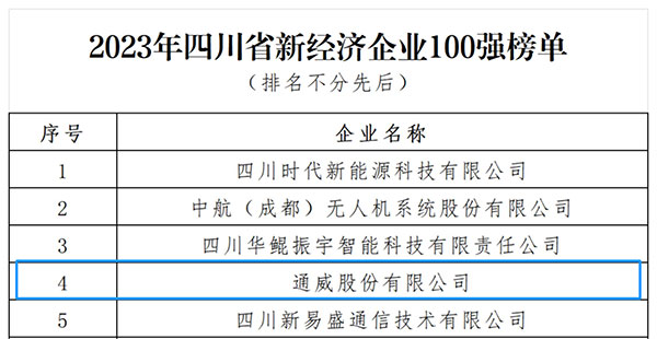 通威榮列“2023年四川省新經濟企業100強”榜單