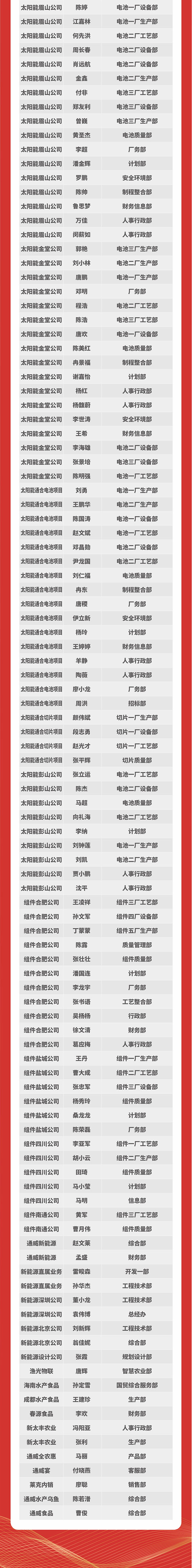 通威集團(tuán)、通威股份2023年度“優(yōu)秀員工”榜單