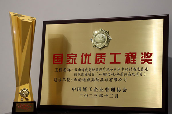 云南通威一期5萬噸/年高純晶硅項目榮獲2022-2023年度國家優質工程獎