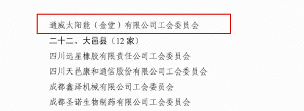 近日,成都市總工會公布了《2023年四、五星級企事業單位工會及四、五級鎮(街道)、產業園區工會名單》,通威太陽能金堂基地工會委員會獲評“2023年成都市四星級工會”。