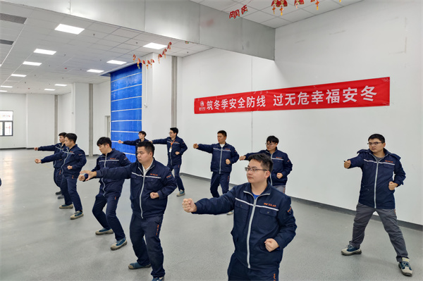 八段錦是一套獨立而完整的健身法,起源于北宋,現代的八段錦經過改良更加符合人體生理特點,練習無需器械,不受場地局限,簡單易學。組件各基地參與員工在領隊的指導下進行練習,認真學習動作要領,互相交流,現場氣氛熱烈。練習的動作包括站樁式、兩手抱球、推掌等,每一個動作都充分舒展筋骨,在寒冷的天氣中健身、暖身,提升了每個人的精氣神。
