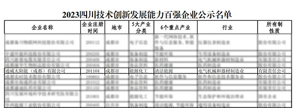12月6日,由四川省企業發展促進中心聯合四川省企業聯合會、四川省企業家協會、四川經濟日報社聯合組織開展“2023年四川企業技術創新發展能力100強”認定工作。通過企業自主申報、系統評分、專家評審等程序,最終在全省范圍內評選出100家四川企業技術創新發展能力100強,通威太陽能雙流基地憑借在科技創新領域的強勁實力成功榮列榜單。
