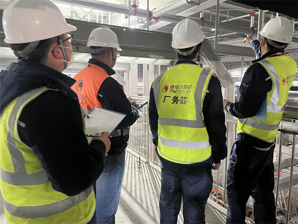 為確保各基地安全生產形勢穩定,筑牢安全防線。11月28日至30日,通威太陽能(組件)各基地組織開展11月份月度綜合安全檢查,并召開月度安全環保例會。通威股份總裁助理、通威太陽能(合肥)有限公司總經理蕭圣義,通威太陽能(鹽城)有限公司副總經理翟緒錦,通威太陽能(四川)有限公司組件一廠廠長朱劍誠分別帶隊檢查,各基地部門負責人及安全員參與檢查。