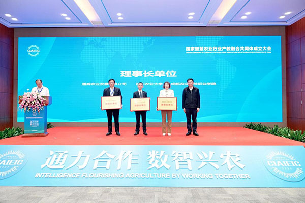 四川農(nóng)業(yè)大學(xué)鄉(xiāng)村振興學(xué)院院長、成都現(xiàn)代農(nóng)業(yè)產(chǎn)研院董事長周倫理發(fā)起共同體建設(shè)倡議。國家智慧農(nóng)業(yè)行業(yè)產(chǎn)教融合共同體將按照“平等、合作、共贏”的原則,堅持公益開放包容,共享行業(yè)發(fā)展信息、研制行業(yè)發(fā)展標(biāo)準(zhǔn)、聯(lián)合開展人才培養(yǎng)、協(xié)同開展技術(shù)攻關(guān),促進產(chǎn)教深度融合。成都市教育局二級巡視員何榮、四川省教育廳職業(yè)教育處二級調(diào)研員蒲元、四川省農(nóng)業(yè)農(nóng)村廳水產(chǎn)局副局長羅本彬表示,行業(yè)產(chǎn)教融合共同體建設(shè)是深化現(xiàn)代職業(yè)教育體系改革的關(guān)鍵任務(wù),是系統(tǒng)推進教育、科技、人才一體化發(fā)展的重大創(chuàng)新舉措,希望共同體成立后,主動對接行業(yè)產(chǎn)業(yè)發(fā)展需要,在農(nóng)業(yè)生產(chǎn)數(shù)字化、標(biāo)準(zhǔn)化、智能農(nóng)機裝備、農(nóng)業(yè)信息化等核心技術(shù)方面實現(xiàn)突破;搶抓智能產(chǎn)業(yè)、數(shù)字經(jīng)濟蓬勃發(fā)展的重大戰(zhàn)略機遇,錨定建設(shè)農(nóng)業(yè)強國目標(biāo),以提高農(nóng)業(yè)全要素生產(chǎn)率為主攻方向,著力推進應(yīng)用場景打造、技術(shù)模式集成應(yīng)用,全方位培育壯大智慧農(nóng)業(yè)產(chǎn)業(yè),為加快農(nóng)業(yè)現(xiàn)代化提供新動能。
