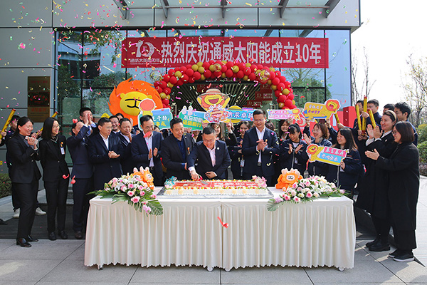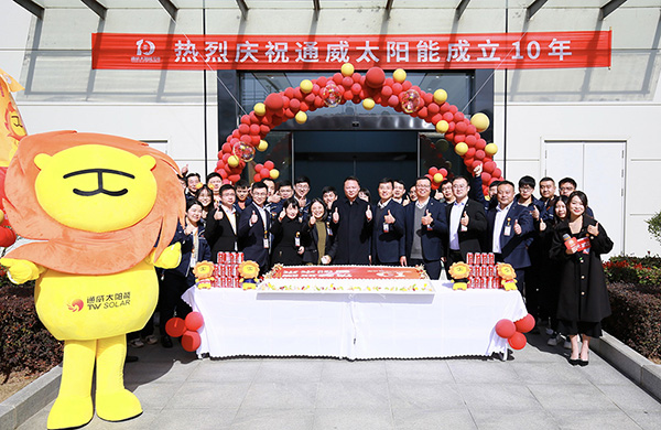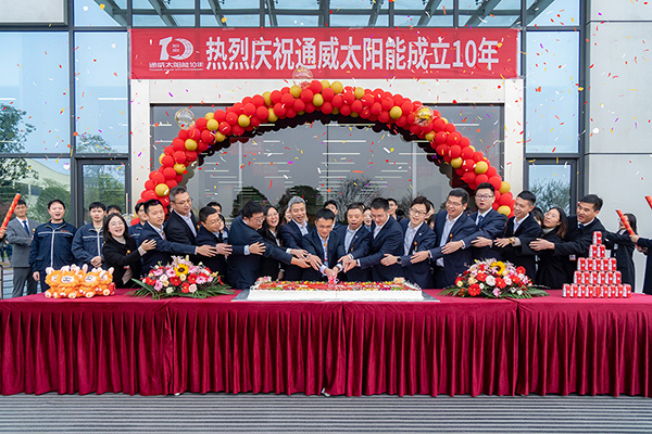 11月18日,通威太陽能迎來十歲生日。十年前,通威太陽能從合肥起步,到如今擁有安徽、雙流、眉山、金堂、通合、彭山六大電池生產基地,產能規模達90GW,員工規模近20000人,電池片出貨量連續六年全球第一,創造了多項光伏行業紀錄。十年風雨,十年成長。為了慶祝十歲這個特別的生日,11月以來,通威太陽能通過舉辦十年慶典、全球合作伙伴大會、公司表彰與主題文化活動,連接和致敬每一位為通威太陽能發展而不懈奮斗的人。