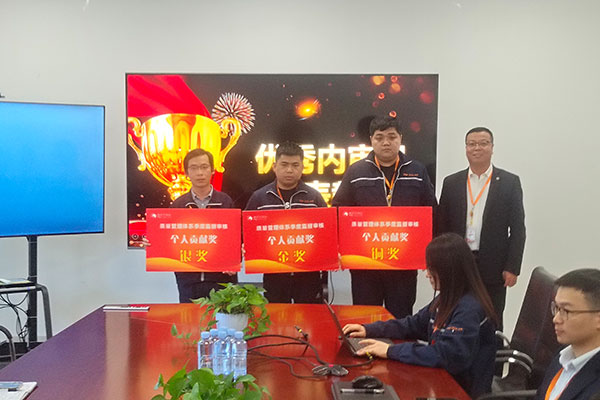 本次內審員表彰是監委會秉持公平公正的原則,對開具不符合項的質量水平負責,鼓勵發現系統性和違背質量原則性的問題,考評分為四個維度:不符合項數量、不符合項的質量、不符合項的嚴重程度,對安徽公司全體內審員在第一季度審核中的表現進行多維度評分。最后,來自電池四廠生產部、安全環境部、電池質量部的內審員分別獲得個人貢獻獎金獎、銀獎、銅獎并給予相應獎勵。