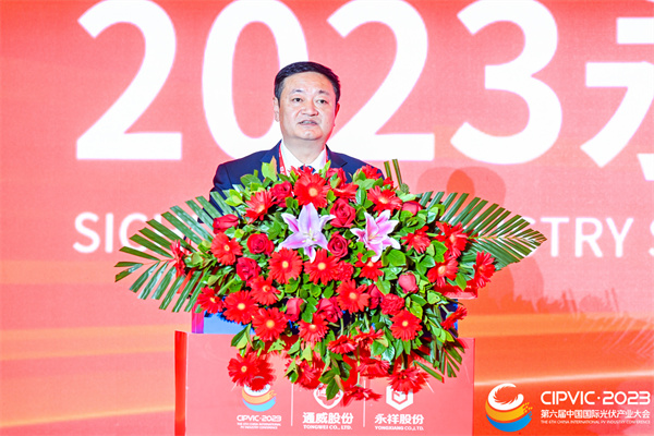四川省經(jīng)濟和信息化廳副廳長曾吉明致辭表示,四川省委、省政府高度重視光伏產(chǎn)業(yè)發(fā)展,將其納入六大優(yōu)勢產(chǎn)業(yè)提質倍增行動的重點領域。在通威等龍頭企業(yè)的引領下,四川已建成全球最大的太陽能硅料生產(chǎn)基地,產(chǎn)能占全球六分之一,已成為具有全球重要影響力的晶硅光伏產(chǎn)業(yè)高地。希望大家以本次大會為契機,充分發(fā)揮國內(nèi)光伏大產(chǎn)業(yè)大市場優(yōu)勢,深化上下游對接交流,建立長效合作機制,明確量價、保障供應、穩(wěn)定預期,進一步提升光伏產(chǎn)業(yè)鏈供應鏈韌性和安全水平,推動光伏產(chǎn)業(yè)高質量發(fā)展。