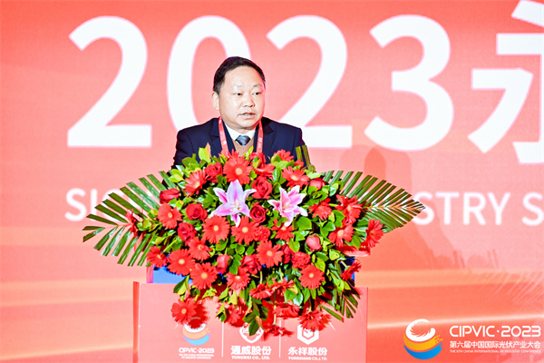 作為2023第六屆中國國際光伏產(chǎn)業(yè)大會的重磅環(huán)節(jié)之一,大會匯聚了四川省經(jīng)濟和信息化廳副廳長曾吉明,云南省保山市委副書記、市長陳銳,中國有色金屬工業(yè)協(xié)會黨委常委、副會長兼秘書長、硅業(yè)分會會長段德炳,內(nèi)蒙古包頭市人民政府黨組成員、一級巡視員王秀蓮,四川省樂山市人民政府副市長張國清,四川省廣元市副市長、蒼溪縣縣委書記張世忠,保山市人民政府秘書長張志紅,四川省蒼溪縣縣委副書記、縣長任云,四川省樂山市五通橋區(qū)委書記劉勇,內(nèi)蒙古包頭市昆都侖區(qū)委書記金永麗,四川省峨眉山市市長陳林強,云南省昌寧縣委副書記、縣長范正建,中國有色金屬工業(yè)協(xié)會硅業(yè)分會專家委副主任呂錦標,通威集團禚玉嬌總裁,通威股份董事長、CEO劉舒琪,隆基綠能事業(yè)部總裁郝凱,京運通副總裁馮震坤,晶科能源副總裁樊華,美科太陽能董事長王祿寶,高景太陽能董事長徐志群,雙良集團副總裁劉振宇,建鴻達實業(yè)集團董事長劉平建,曲靖陽光新能源董事長譚鑫,宇澤半導體董事長閆洪嘉,天合光能采購總監(jiān)鄭淑芬,晶澳太陽能采購總監(jiān)趙新諾,華耀光電采購總監(jiān)趙益峰,通威股份副總裁、永祥股份總經(jīng)理李斌出席大會。