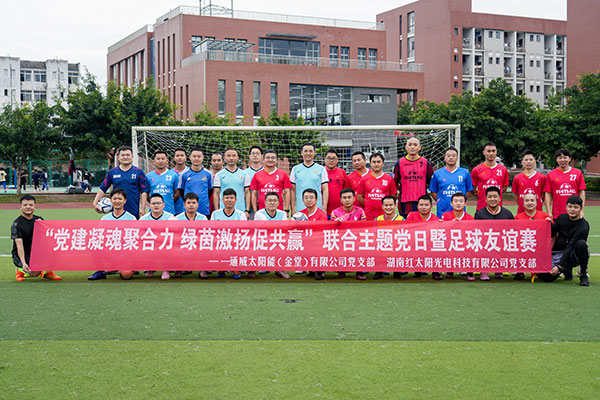 為豐富黨員職工群眾的業余文化生活,增進與黨建共建單位的溝通交流,1013日,通威太陽能金堂基地黨支部與湖南紅太陽光電科技有限公司黨支部開展了黨建凝魂聚合力 綠茵激揚促共贏聯合主題黨日暨足球友誼賽。紅太陽光電公司董事長肖昕、金堂基地黨支部書記、總經理助理龐三鳳分別帶領公司代表隊出戰。
