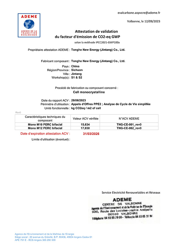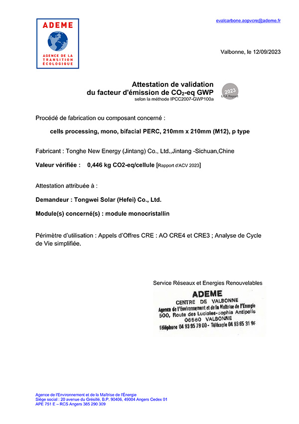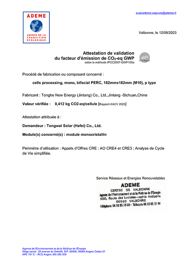 近日,通合新能源電池項(xiàng)目順利通過法國(guó)ECS碳足跡認(rèn)證審核,取得了產(chǎn)品碳足跡認(rèn)證證書,意味著公司實(shí)現(xiàn)了對(duì)產(chǎn)品全生命周期碳排放的評(píng)估和監(jiān)測(cè),打破了公司產(chǎn)品進(jìn)入法國(guó)市場(chǎng)的環(huán)境壁壘,為拓寬國(guó)際市場(chǎng)提供有力保障。