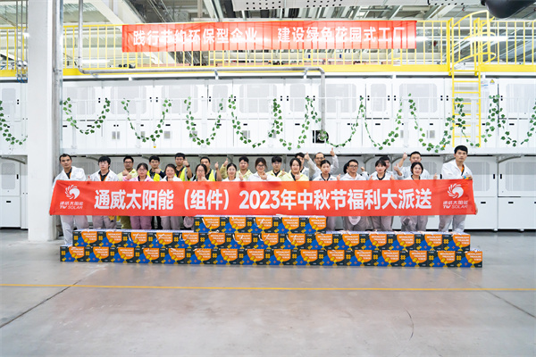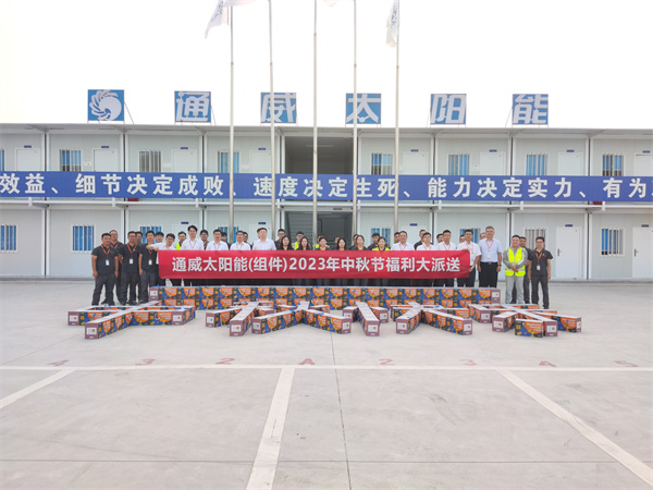隨著中秋佳節(jié)的臨近,為了感謝員工們的辛勤付出,讓大家在節(jié)日里感受到公司的關(guān)懷和溫暖,9月26日,通威太陽能(組件)各基地先后開展了中秋福利派送活動。