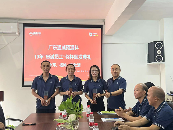 演講開始前,郭總對滿10年的“忠誠員工”頒發獎杯及獲獎員工發表在通威10年感言為演講活動熱身,使演講活動氛圍迅速提升,員工們心情激動又感動,驕傲又自豪。