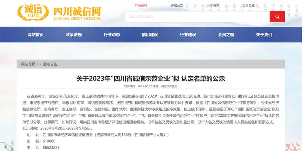 四川省市場(chǎng)經(jīng)濟(jì)誠(chéng)信建設(shè)促進(jìn)會(huì)官網(wǎng)公示