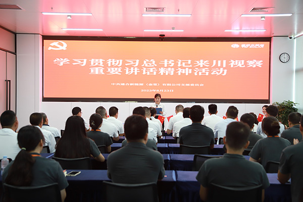為深入貫徹黨的二十大精神,領會習總書記四川考察重要指示精神,8月23日,通合新能源黨支部組織開展學習貫徹習總書記來川重要講話精神專題活動。通合新能源黨支部書記、總經理助理羅曉云出席活動,淮州新城黨群工作部組織科副科長趙忻、玉溪社區黨委黨員代表、公司黨員、入黨積極分子、團委委員、婦聯及工會委員代表50余人參加本次活動。