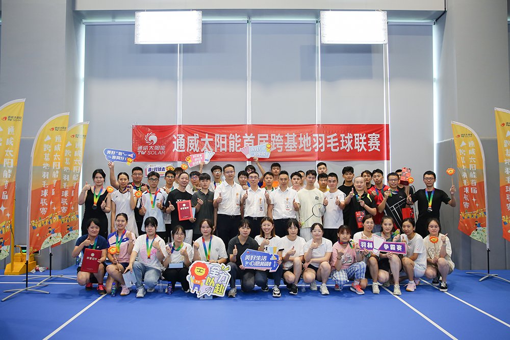 為加強各基地間的交流互動,弘揚公司積極向上的企業文化,豐富全體職工的精神文化生活,8月16日,通威太陽能紅色聚能家舉行首屆跨基地羽毛球聯賽,來自眉山、金堂、彭山基地及通合項目的羽毛球愛好者齊聚雙流,同臺競技。通威太陽能總經理周華蒞臨現場觀賽,通威太陽能副總經理宋梟、總經理助理陳君,雙流基地總經理助理徐濤出席現場并頒獎。