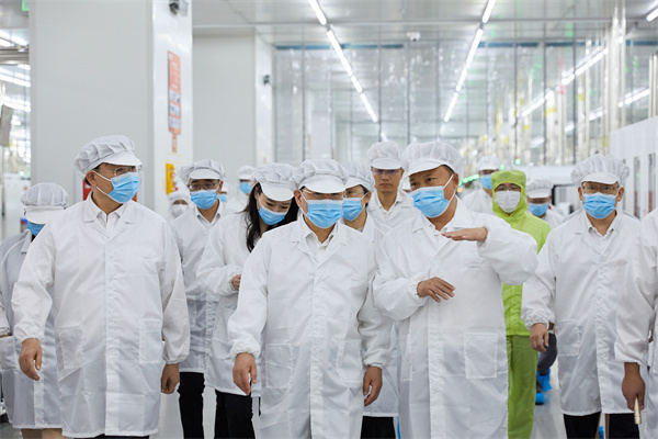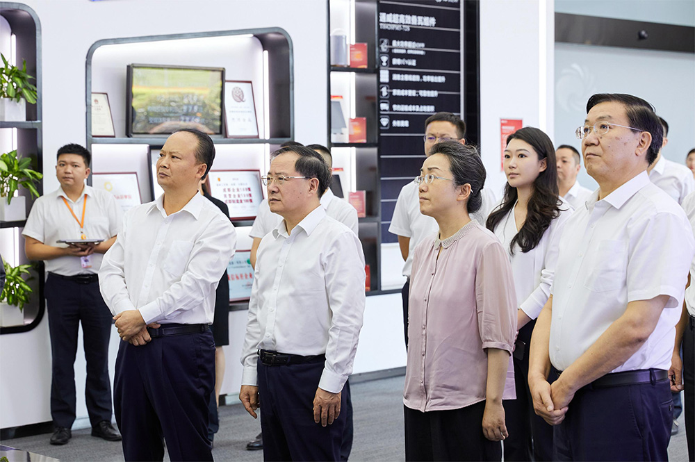 劉漢元主席、劉舒琪董事長陪同金壯龍部長一行參觀通威太陽能(電池)雙流基地智能制造展廳