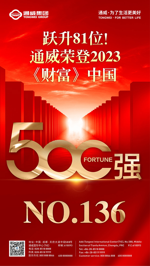 躍升81位!通威榮登2023《財富》中國500強第136位