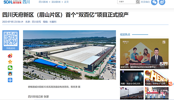 四川在線聚焦通威太陽能彭山基地正式投產(chǎn)