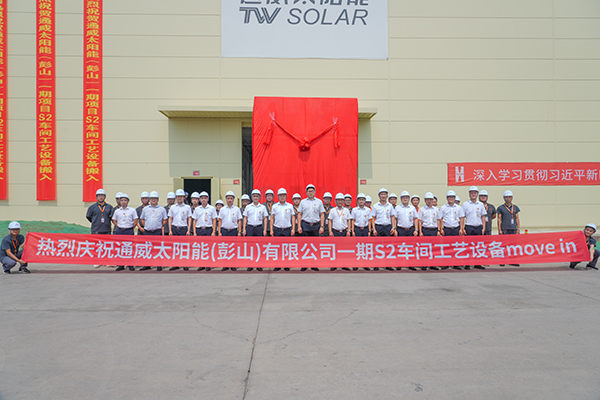 2023 年,是通威太陽能承上啟下的第一個十年,是關鍵之年,也是獻禮之年。在通威太陽能彭山基地一期高效晶硅電池項目S1車間安全、高效地完成設備搬遷工作后,7月10日,通威太陽能彭山基地 S2車間工藝設備 Move In 如期舉行,再邁新臺階。通威太陽能彭山基地總經理助理顧峰攜相關部門負責人、員工代表共同見證這一重要時刻