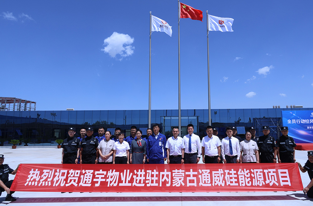 2023年7月3日,隨著內蒙古通威硅能源首場升旗儀式的順利舉行,通宇物業正式進駐內蒙古通威硅能源項目,開啟內蒙古通威物業大基地管理的新篇章。升旗儀式后,通宇物業舉行了內蒙古通威硅能源項目進駐儀式,硅能源項目指揮組、綜合組、安環組負責人及通宇物業總經理助理等相關領導出席儀式。