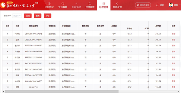 蓉城先鋒黨員學習統(tǒng)計截圖