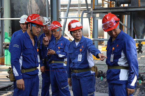 檢查過程中,劉總一行先后前往809合成、回收屬地,重點對生產現場動火、高處等特殊作業進行檢查,抽查員工作業票填寫和作業現場安全管控。