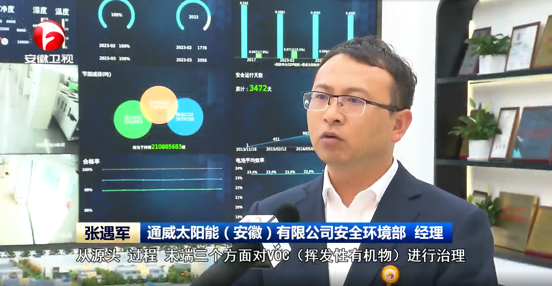 6月18日,《安徽新聞聯播》以全省大氣環境質量穩定向好為主題,聚焦通威太陽能安徽公司大氣治理重點舉措。