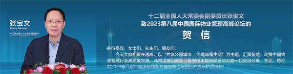 十二屆全國人大常委會副委員長張寶文特別為本屆論壇發來賀信,向大會的隆重召開表示熱烈祝賀,并表示,在政策的指引下,物業服務企業在推動生活性服務業發展,提高人民生活品質方面將會發揮出不可替代且越來越重要的作用。物業是美好生活的重要組成部分,希望中國物業人牢記使命責任,樹立高質量發展理念,齊心協力,凝心聚力,為實現人民對美好生活的向往作出積極貢獻!