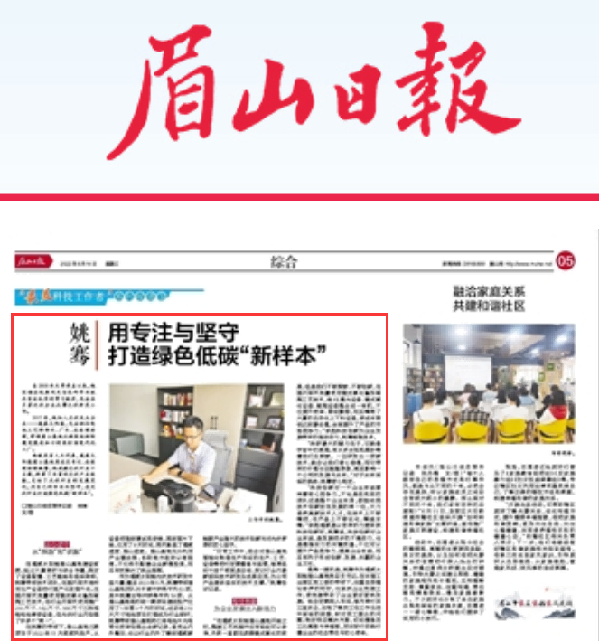 614日,眉山日報發布一篇題為姚騫:用專注與堅守 打造綠色低碳新樣本’”的專題報道,聚焦通威太陽能眉山基地總經理助理姚騫深耕光伏行業的匠心堅守與專注創新。