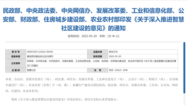 2022年,黨的二十大從黨和國家事業發展全局和戰略高度,提出了新時代數字中國建設的整體戰略。住房和城鄉建設部、民政部、中央政法委、中央網信辦、發展改革委、工業和信息化部、公安部、財政部等部委也出臺政策意見,明確智慧社區建設任務要求,支持物業管理企業智慧化建設。數字化時代,智慧城市、智慧社區、智慧物業已成為行業熱詞。此次政策的推出,再次加速推進了智慧社區與智慧物業的建設,智慧社區與智慧物業建設勢在必行。作為智慧社區必不可少的一環,智慧物業將為物業管理行業注入全新活力,物企將迎來重要發展機遇。