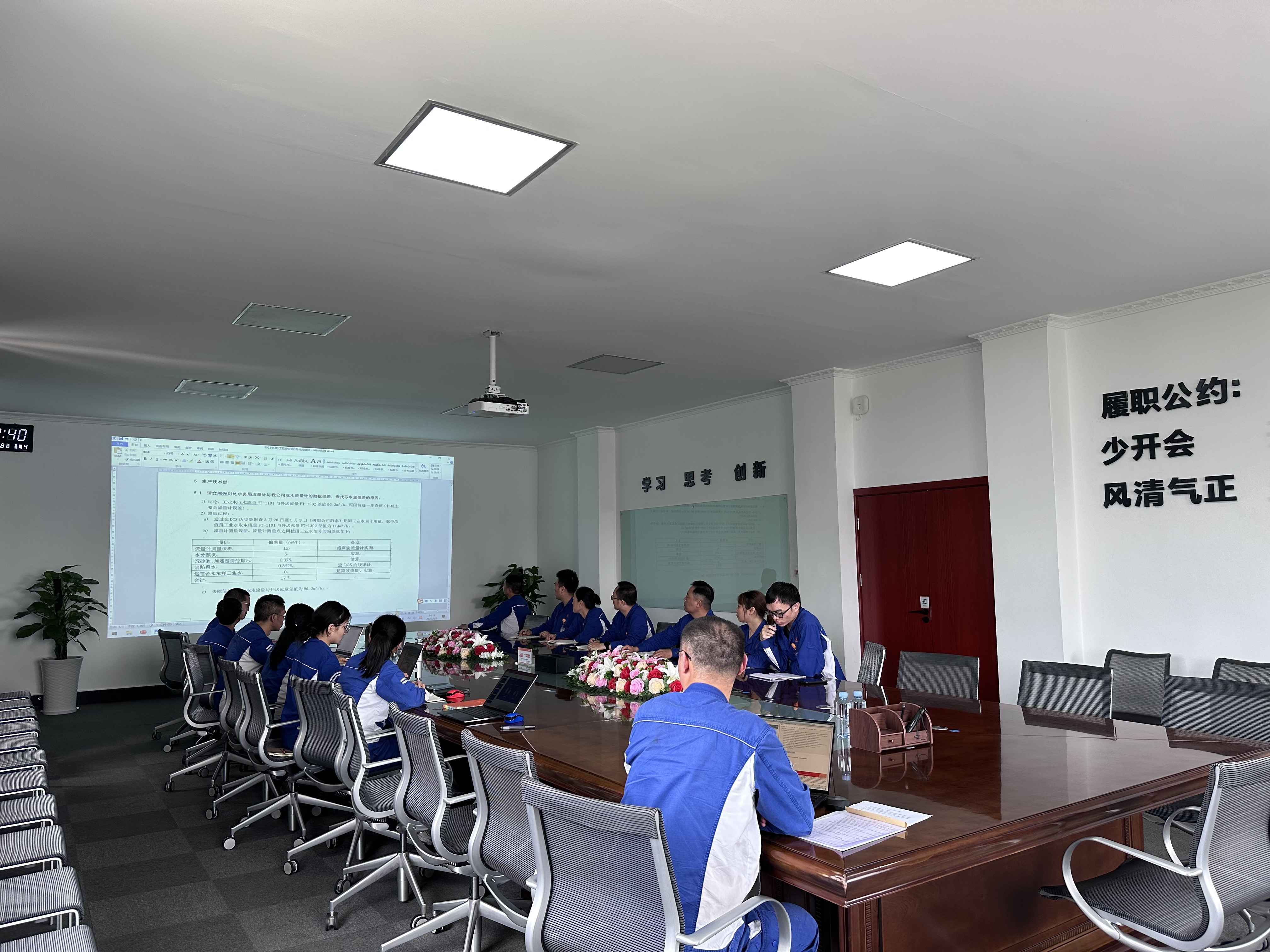 本次會議主要圍繞工藝安全分享、工藝運行跟蹤反饋、5月工藝指標分析抽查車間工藝技術人員對指標的理解、工藝新技術學習等方面開展。生產(chǎn)技術部各工藝專業(yè)人員重點對所管轄車間工藝指標控制情況進行全面分析,對不足之處提出改進建議,并組織大家學習“離子膜電解槽電耗成本降低措施的探討”新工藝的學習。針對工藝控制上存在的偏差,文總與參會人員共同討論交流,查找根源,制定改進措施。