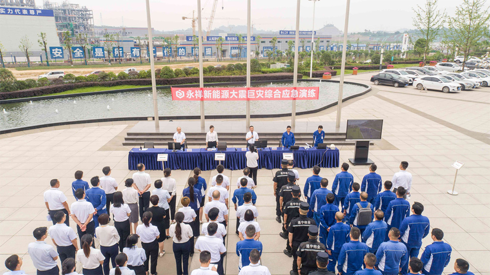 6月13日,永祥新能源開展大震巨災綜合應急演練。通威股份副總裁、永祥股份總經理李斌出席并擔任總指揮,永祥股份副總經理、永祥新能源常務副總經理羅周,永祥股份安全環保總監楊武明,永祥新能源副總經理涂大勇、設備總工程師蔡勇等領導干部組成應急救援領導小組。