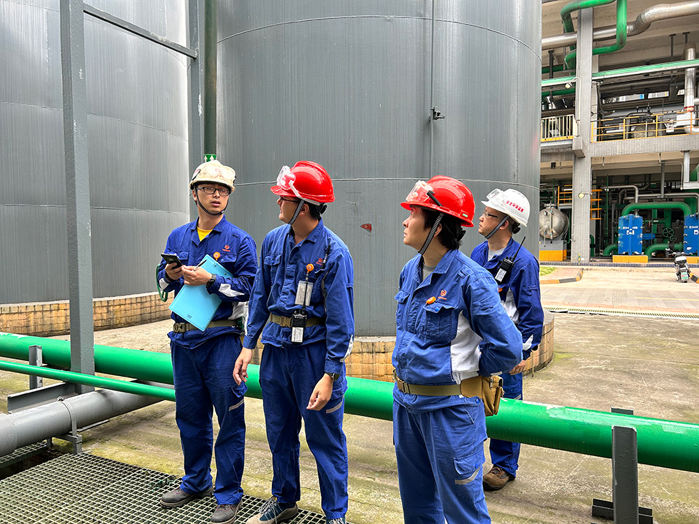 檢查現場,劉總一行通過實地檢查,詳細了解裝置運行、應急設施及安全標準化等工作的落實情況,幫助工段排查出在自主管理過程中的漏點及隱患。