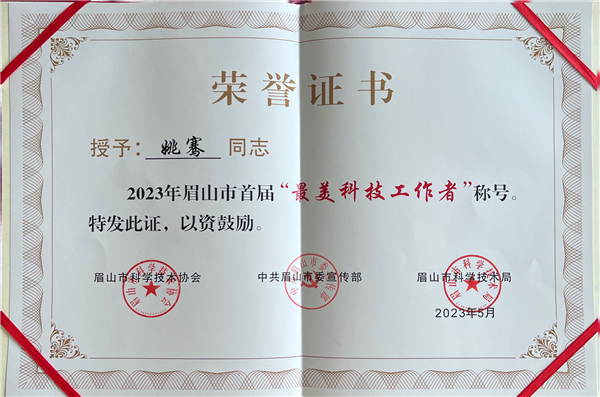 “最美科技工作者”榮譽證書