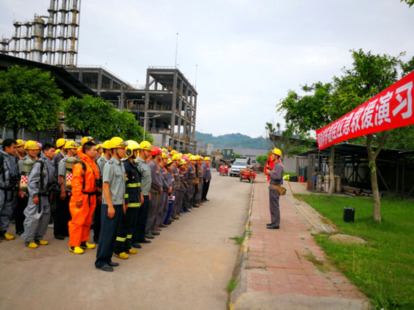為了進一步提高公司安全環保事故的應急處理能力,進一步完善企業應急隊與消防隊的互助和處置重大危險源泄漏事件、突發環保事件、緊急疏散事件的協調能力,真正達到落實預案,鍛煉隊伍的目的。 5月23日下午四點半,永祥多晶硅在191-3罐區舉綜合應急演練。參加此次演練的人員有安全管理人員、管理提升小組、品管部、調度室、消防兵、保安隊、設備動力部檢修人員、班組安全環保員等共計66人,另60余人參加了演練觀摩。