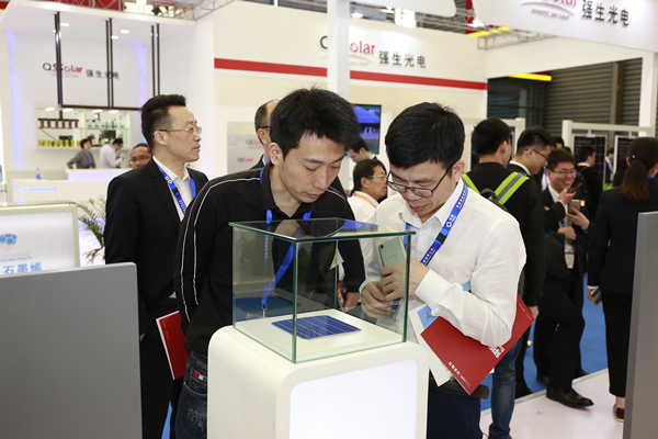 參展商在通威集團(tuán)展臺查看太陽能電池片