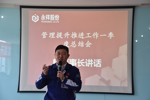 段董事長分別點評了各公司管理提升工作,指出管理提升自開展以來,不斷推向深入,形成了良好的氛圍,變化明顯。從一季度經營管理結果來看,每家公司都超越挑戰目標,沒有發生一起安全環保事故。工作成效與生產現場,讓人有一種自豪感,這是最好的結果。通過環保開放活動、實事求是的正向宣傳,老百姓對永祥認可了,向我們豎大拇指,充分證明管理提升,我們做對了。段董事長指出,安全環保跟我們每天的操作巡檢、每天的生活、呼吸息息相關,要讓員工舒心、政府認可、董事會放心。今天看到了成績、看到了變化和持續提升,但還不夠,還要把工作做得更細,優秀的企業是從細節做起。要加強操作演練熟悉程度,加強重大安全環保裝備裝置的投放、抽查和維護,更高標準地做,絕不松懈。