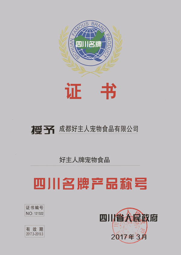 成都好主人寵物食品有限公司在第十二屆四川名牌評選中脫穎而出,榮獲“四川名牌產品”稱號,這是對成都好主人寵物食品有限公司一直以來堅持“品質強企,生產安全寵物食品”理念的認可和鼓勵。自好主人2000年成立伊始,便始終貫徹劉漢元主席“努力將好主人打造為亞洲領先、全球一流的前瞻概念工廠和示范工廠!”的指示,2017年,隨著全亞洲規模最大、最新生產線的順利投產,公司不斷推動高效率、高產能、高品質的生產要求發展,最終實現由生產高品質產品向打造國際一流品牌的轉變。