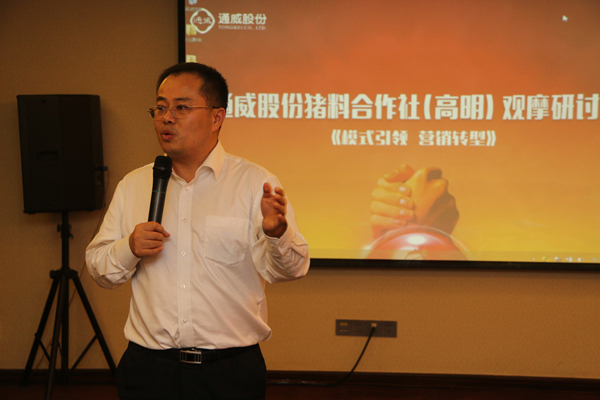 圍繞“合作社”、“豬場直銷”通威豬料發(fā)展的兩大核心戰(zhàn)略,3月22-24日,在通威股份市場營銷部的精心策劃組織下,“通威股份豬料合作社(高明)觀摩研討會”在佛山成功舉行,標(biāo)志著通威股份豬料合作社模式引領(lǐng)行業(yè)跑步進(jìn)入合作社時代。通威股份郭異忠總裁、通威股份總裁助理兼華北戰(zhàn)區(qū)總裁周澎、通威股份華南一區(qū)總裁鄧金雁、通威大學(xué)執(zhí)行副校長張紅纓出席,通威股份市場營銷部以及20余家豬料銷售分、子公司派出的精銳力量參會。