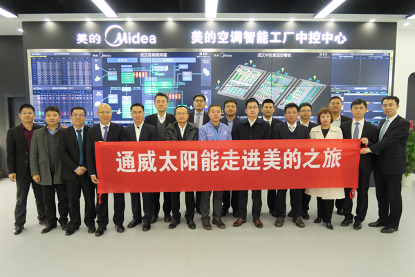 3月21日,通威太陽能(合肥、成都)有限公司董事長謝毅率公司高管、中干團(tuán)隊赴美的集團(tuán)武漢智能工廠參觀學(xué)習(xí),美的集團(tuán)武漢制冷設(shè)備有限公司制造部部長佟海林熱情接待并全程陪同。