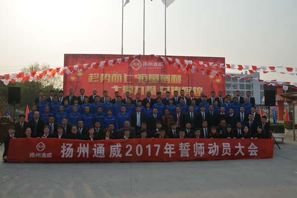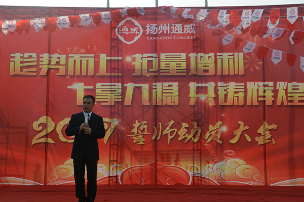 3月10日,以“趁勢而上 搶量增利 十拿九穩(wěn) 共鑄輝煌”為主題,揚(yáng)州通威2017誓師動員大會隆重召開,通威股份副總裁兼華東戰(zhàn)區(qū)總裁王尚文出席,華東戰(zhàn)區(qū)水產(chǎn)技術(shù)總監(jiān)蔣宗杰、揚(yáng)州通威總經(jīng)理楊建波及全體員工參會。