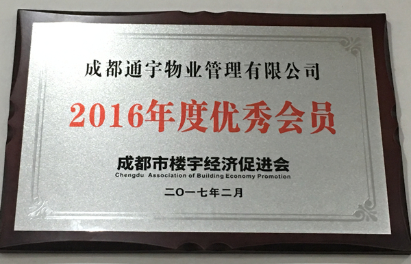 成都通宇物業管理有限公司榮獲“成都市樓宇經濟促進會優秀會員企業”